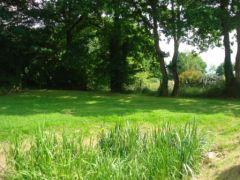 Le grand terrain de 1954 m² est clos. Il y a un bois avec des chênes remarquables, un châtaignier, un noisetier, des poiriers et des cerisiers sauvages, un bouleau, un sapin, …