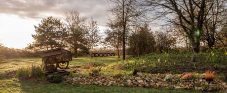 Une cuve de récupération d'eau de pluie enterrée de 5 000 litres permet de fournir de l’eau pour le jardin.