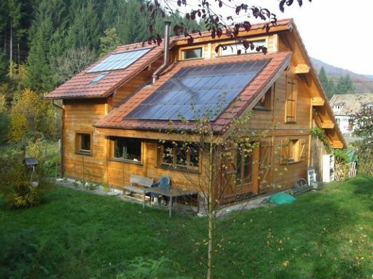 nature environnante. Le débord de toit étant important, le soleil rentre en